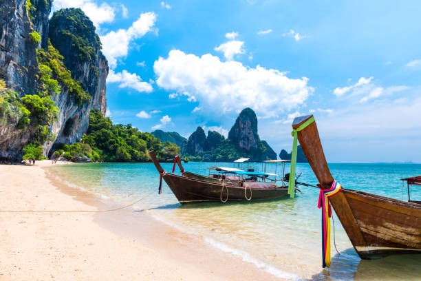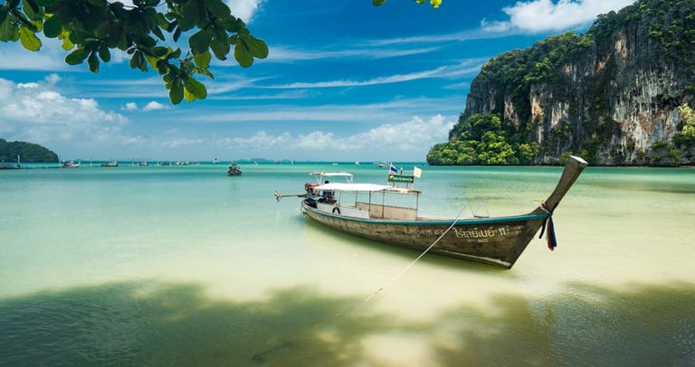 The first time I took a longtail boat to Railay Beach, I felt like a child again, full of wonder. The boat cut through the Andaman Sea, the water sparkling under the sun, and then suddenly the cliffs appeared — huge, towering walls of limestone rising straight out of the ocean. Railay is technically part of the mainland, but it feels like an island because there are no roads leading there. Only boats.