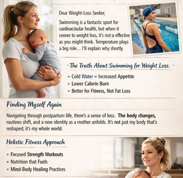 This doesn’t make swimming “bad.” It simply means that for many people, swimming alone is not the most efficient tool for weight loss, especially when time, recovery, and hormonal balance matter—such as after childbirth.