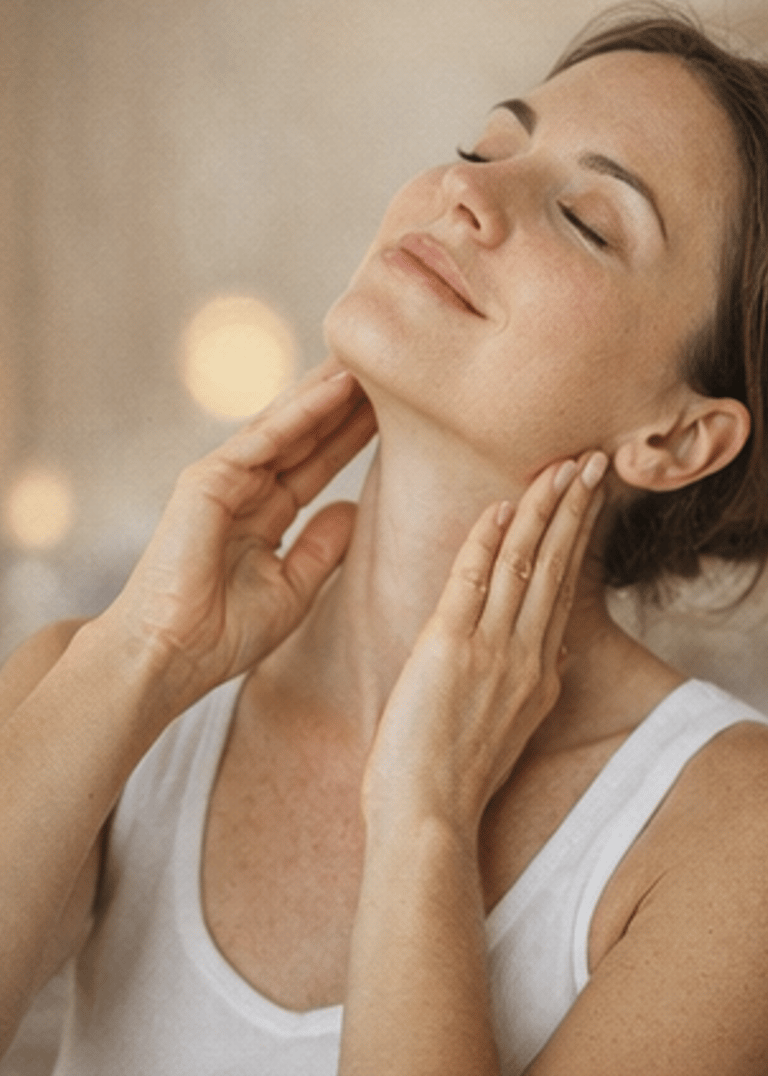 There’s something deeply intimate about touching your own face with intention. Not hurriedly applying makeup. Not quickly cleansing before bed. But truly feeling the structure of your cheekbones, the curve of your jaw, the tension around your temples.