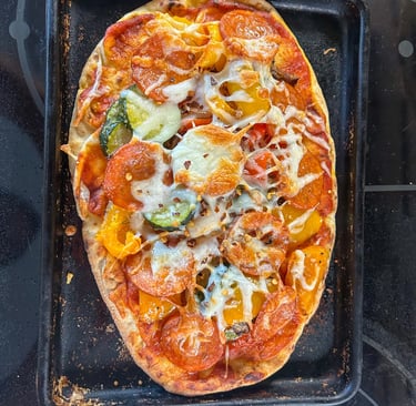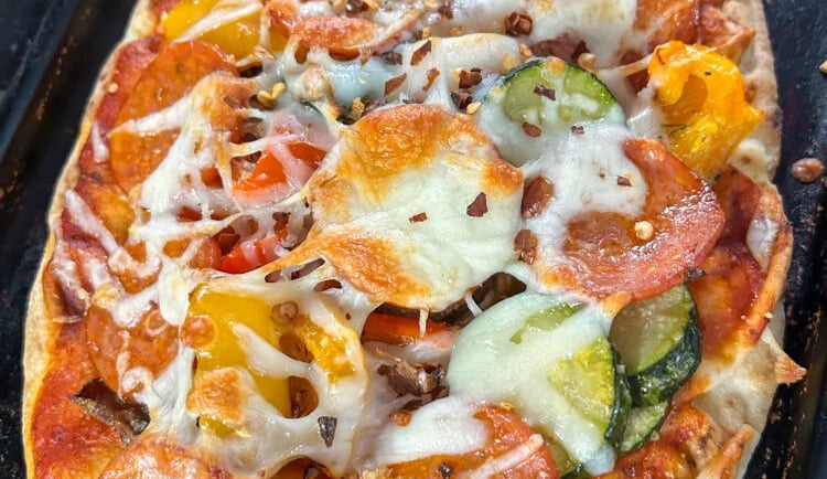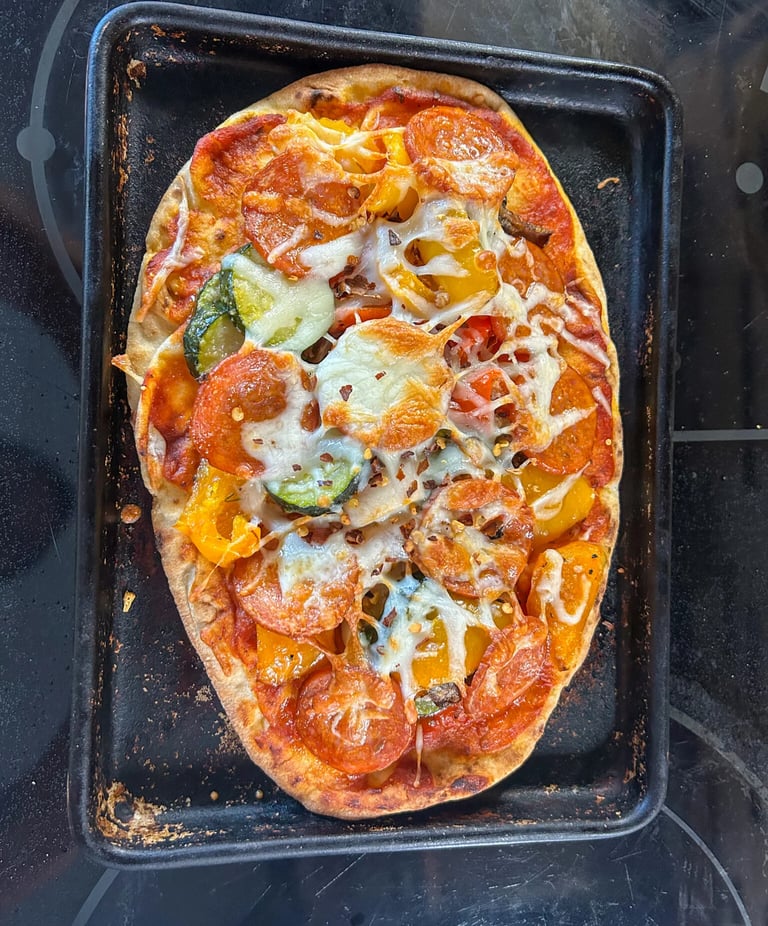 The naan gives you chew and crispness. The sauce adds just enough acidity. The vegetables bring freshness, and the pepperoni adds salt and richness without overpowering everything.