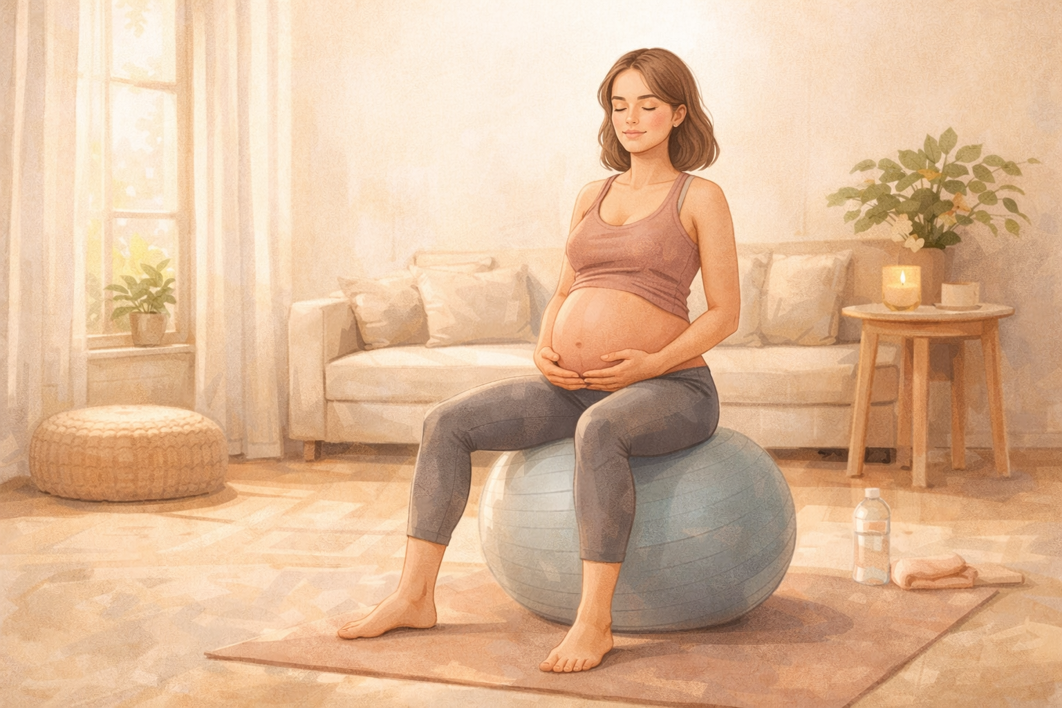 One of my favorite starting positions for gentle movement became sitting on a large exercise ball. Sitting this way helped me find a comfortable, upright posture without tension. With my feet grounded and my spine lengthened, I felt supported and stable. From this position, I could gently move my pelvis, mobilize my spine, and bring awareness to my posture and breathing. It felt grounding and safe, especially on days when standing for long periods felt tiring. This simple setup reminded me that a prenatal workout doesn’t require complicated equipment or a perfect space. It requires presence and care.