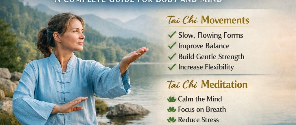 Tai Chi movements and Tai Chi meditation create a powerful balance between physical activity and mental calm. Together, they strengthen the body, relax the mind, and improve overall well-being.